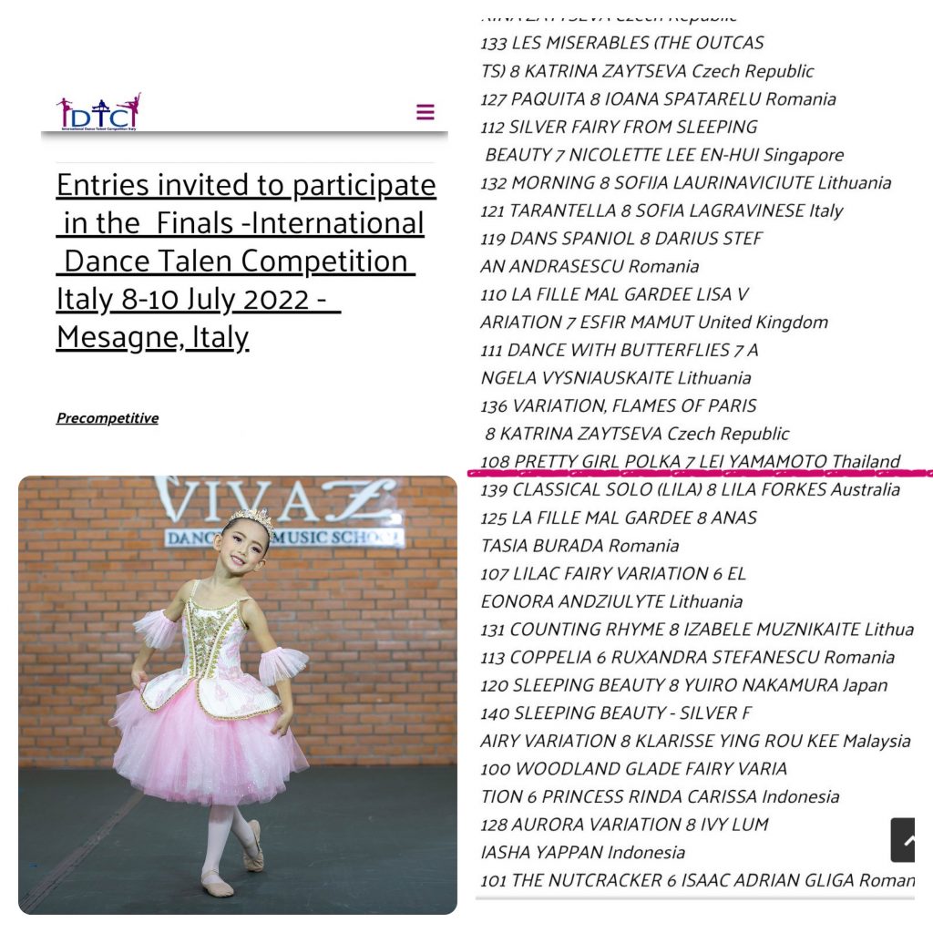 Congratulation to Lei Yamamoto who invited to participated in the Final by International Dance Talent Competition Italy.
